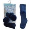 Baby Girls Plain Navy Tights With Pom Pom hosierydirect.jpg