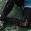 WOMENS OPAQUE “RISE AND SHINE” SILVER PRINT TIGHTS