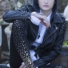 - Black tights with gold print